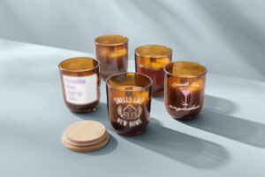 Bem-Estar: Sabonetes artesanais, velas aromáticas, mini escalda-pés com embalagens/rótulos personalizados.